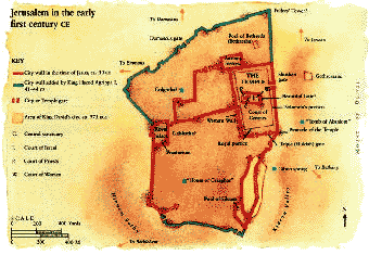 Today the Moslem Dome of the Rock in Jerusalem is the prominent building where the Jewish temple once stood. When Jesus came to Jerusalem, the Temple had just been marvellously rebuilt by Herod the Great. The Temple area had been enlarged to a size of about thirty-five acres. Around the Temple area were double colonnades. The Jewish historian Josephus describes the colonnades: